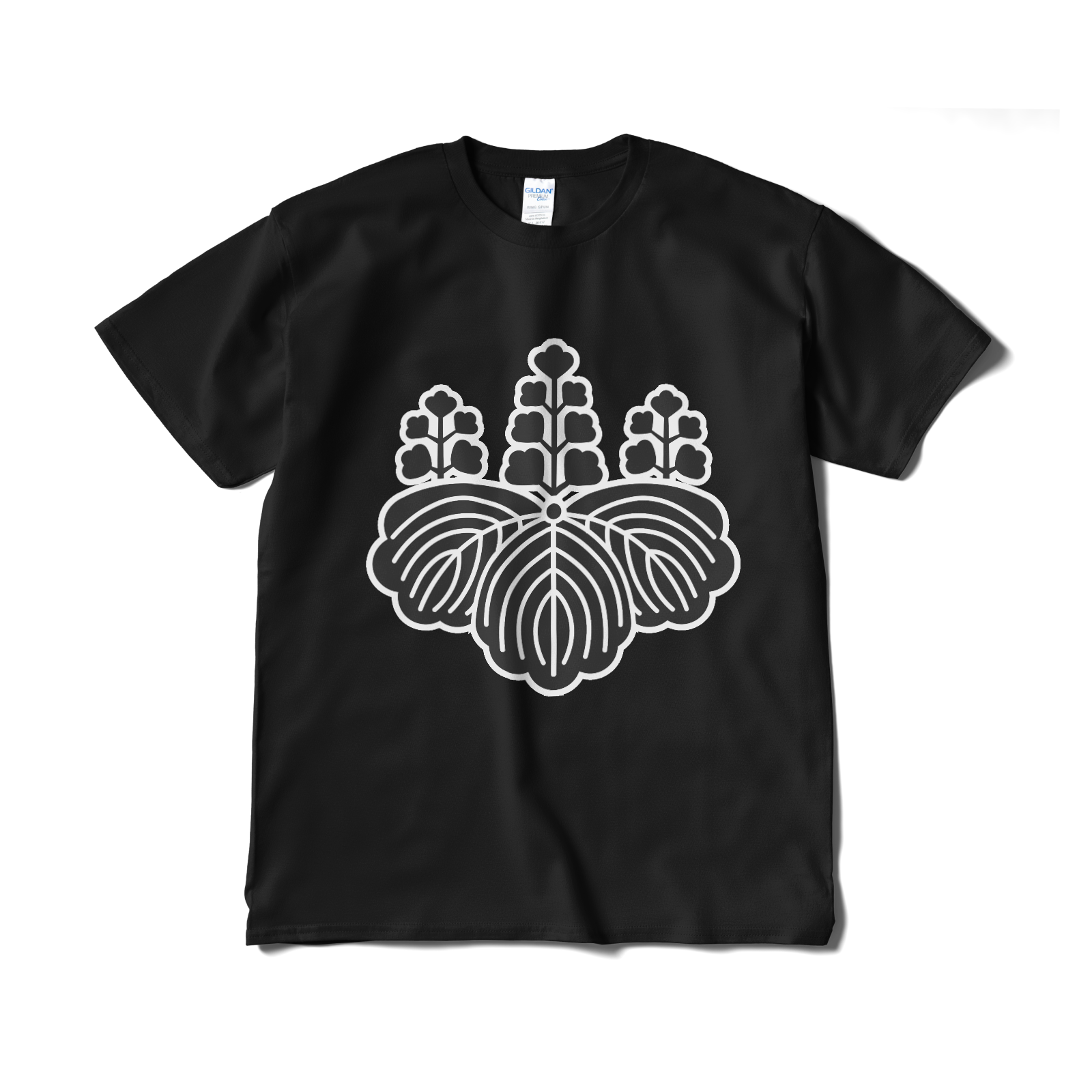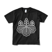 戦国武将 豊臣秀吉が天皇に下賜され、息子の秀頼も使った家紋です。「五七の桐」をあしらったTシャツ。