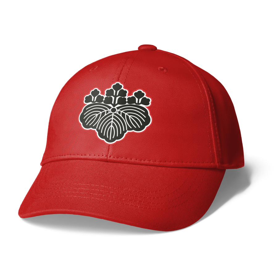 織田家,豊臣家,紋所,紋,武将,紋どころ,エンブレム,和風,日本,ジャポニズム,日本風,侍,サムライ,アイコン,マーク,シンボル,紋章,デザイン,サイン,シンボルマーク,記号,桐,桐紋,赤,赤色,黒,黒色,キャップ