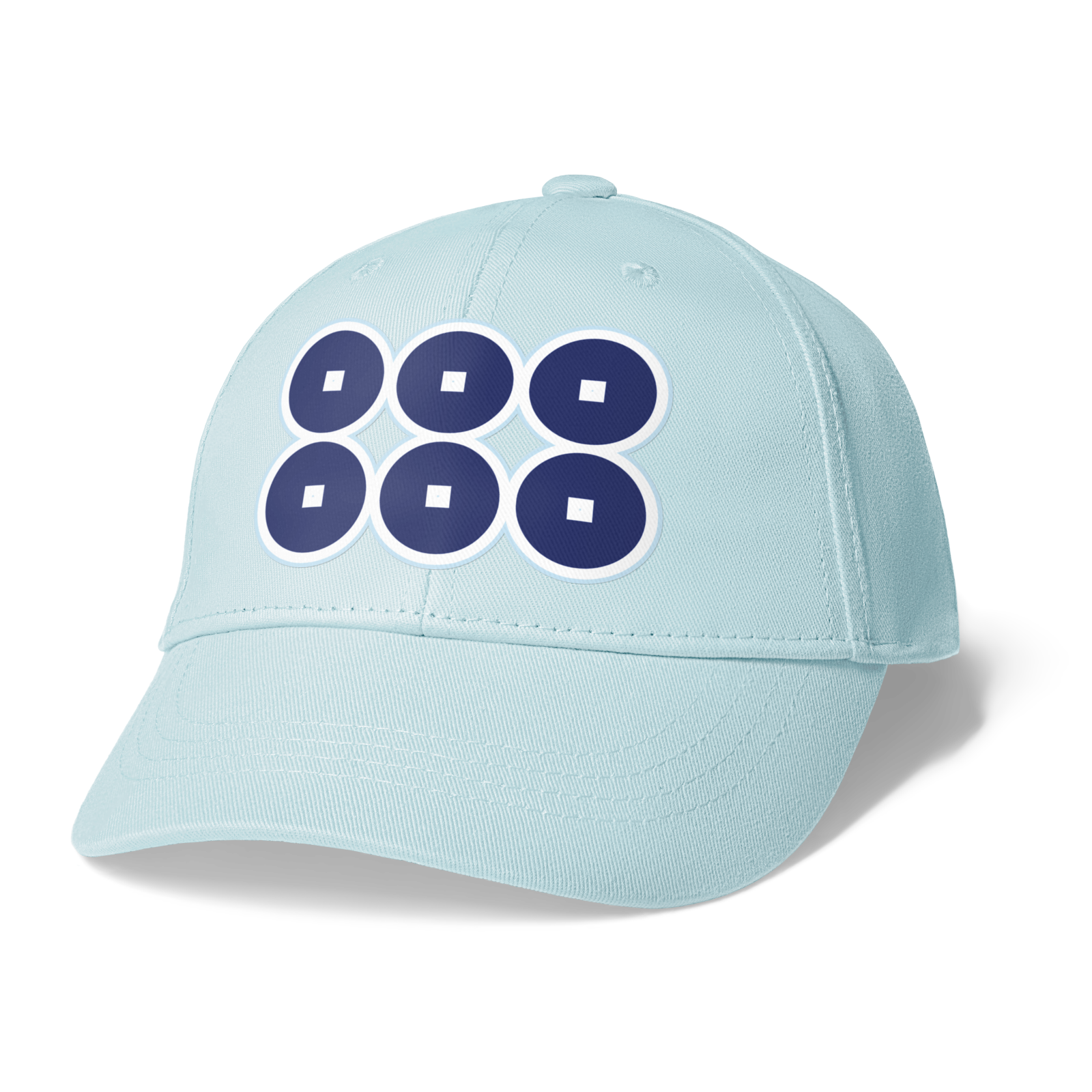 真田幸村,真田家,幸村公,紋所,紋,武将,紋どころ,エンブレム,和風,日本,ジャポニズム,日本風,侍,サムライ,アイコン,マーク,シンボル,紋章,デザイン,サイン,シンボルマーク,記号,銭,銭紋,水色,スカイブルー,紺,紺色,キャップ,帽子